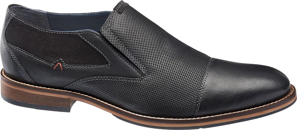 Der Slipper von AM SHOE erfüllt im Alltag und im Job höchste Ansprüche. Der schmal geschnittene Schuh zeichnet sich durch eine hochwertige Verarbeitung aus schwarzem Leder sowie Textil aus und punktet gleichzeitig mit unterschiedlichen Strukturen. Ziernähte und ein kleiner Blockabsatz runden die Optik des schicken Schuhs harmonisch ab. Praktisch überzeugt der Slipper sowohl mit seitlichen Elasteinsätzen als auch mit angenehm weichem Innenmaterial aus Leder.