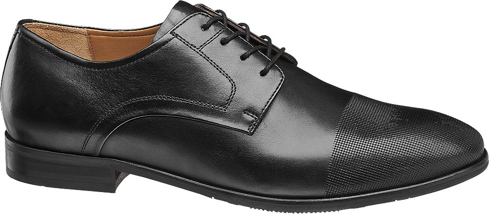 Ein klassisches Schuhwerk darf im Job zu Anzügen und Sakkos nicht fehlen. Aus diesem Grund präsentiert sich der Business Schnürer von AM SHOE mit einem Obermaterial aus hochwertigem Leder in zeitlosem Schwarz. Der elegante Schuh fällt an der Schuhspitze durch eine besondere Strukturierung auf und wird von einem kleinen Blockabsatz harmonisch ergänzt. Zu der gegebenen Vollleder-Ausstattung gehört darüber hinaus auch weiches Innenmaterial aus Leder.
