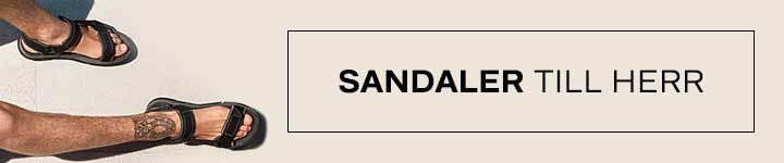 Här på sidan finner du vårt sortiment av herrsandaler för de varmare månaderna. Välj mellan lädersandaler, mer robusta modeller för promenader och vandring samt klassiska badsandaler och badskor.Sandaler till herrar är det givna valet för dagar då klassiska herrskor, tygskor eller sneakers är för varma. Med ett par herrsandaler får fötterna god luftcirkulation och bästa möjliga komfort. Samtidigt behöver du inte göra avkall på varken design eller stil. Herr sandaler av idag finns i eleganta modeller som ger en välklädd touch till de flesta outfits. En varm sommardag passar eleganta lädersandaler perfekt till såväl chinos och skjorta som t-shirts och shorts.